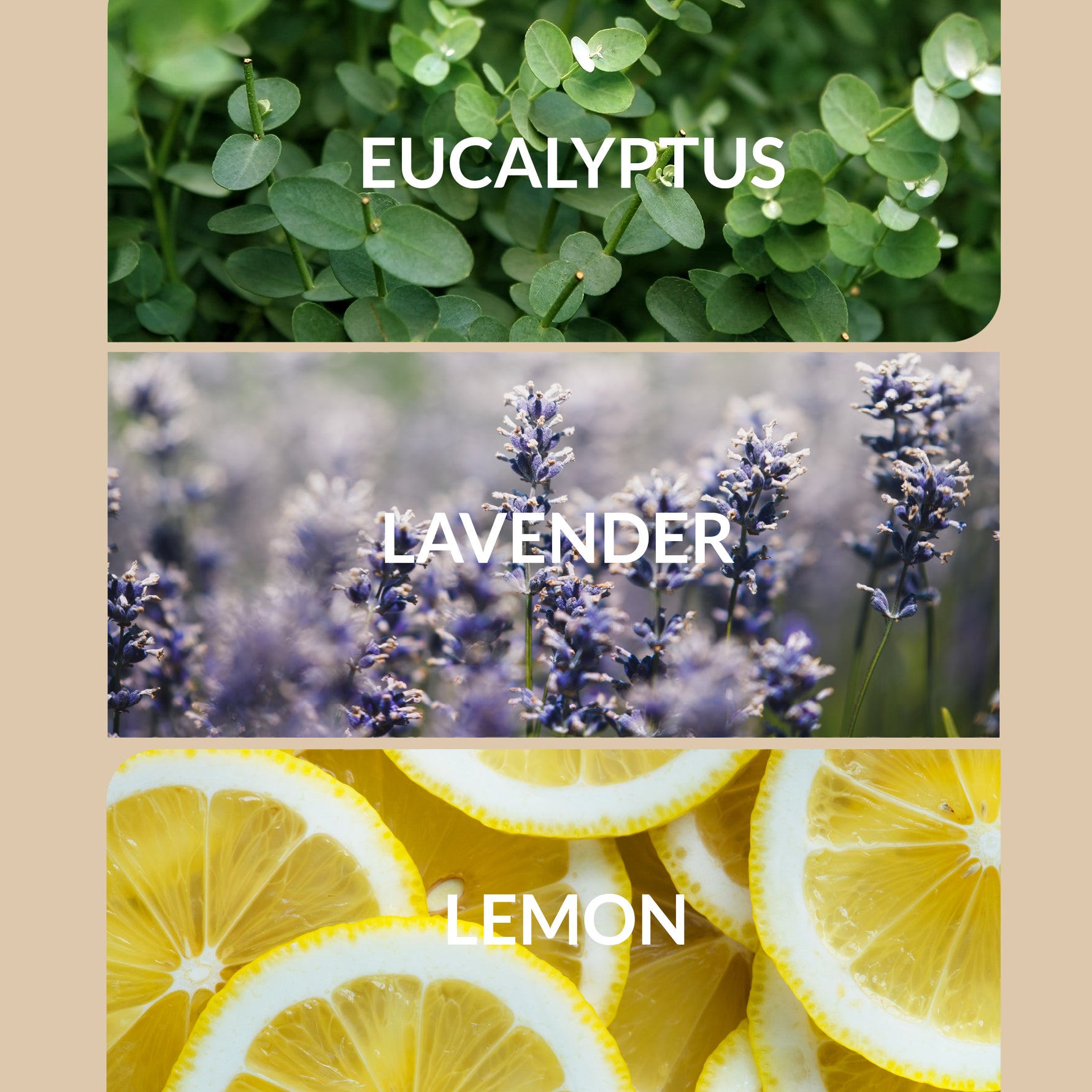 Top Note: Lavender, Eucalyptus, Lemon