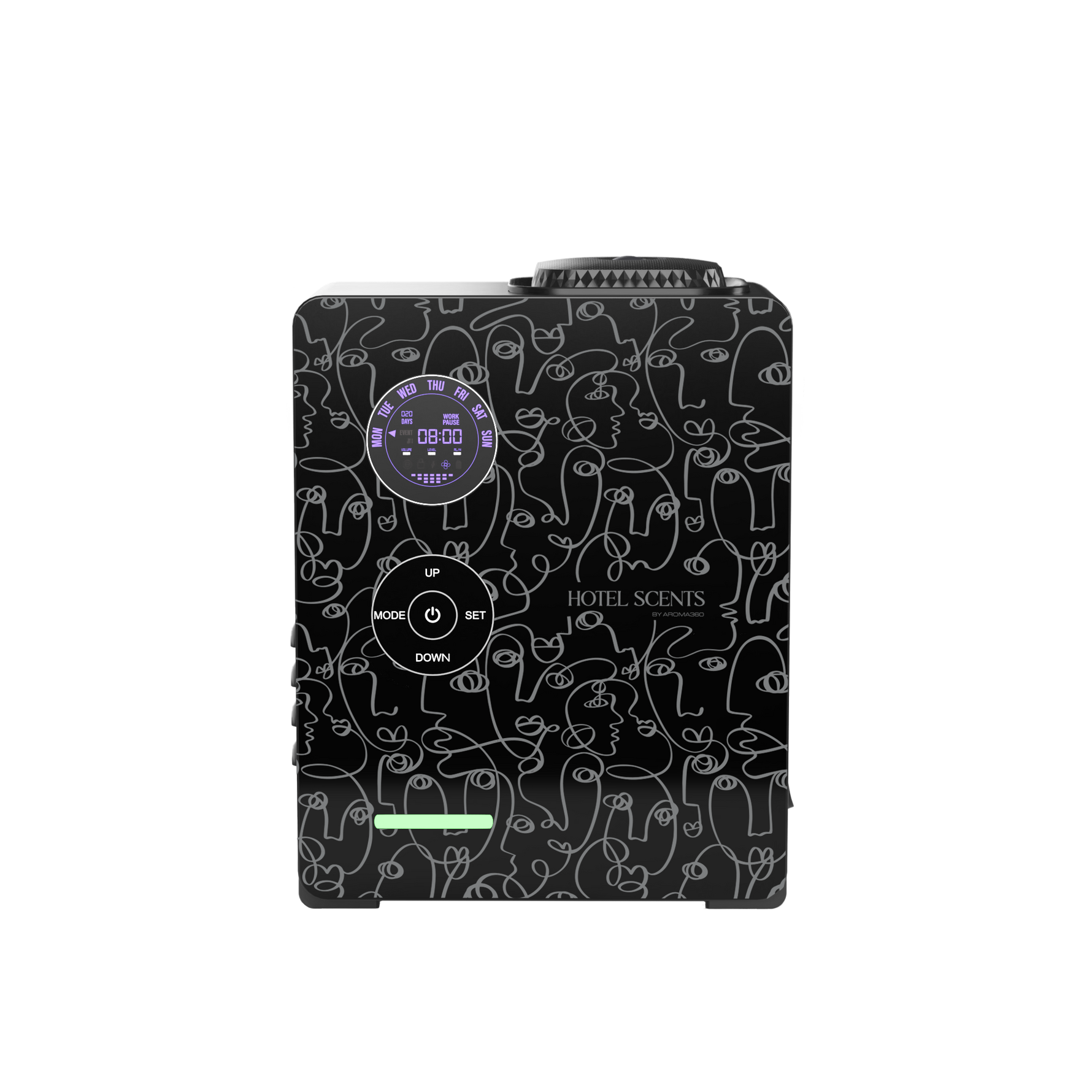 The DaVinci360 features a programmable weekly timer that allows up to four unique operating periods to best fit your scenting schedule, which can be developed in advance with your scent consultant. A security lock for the fragrance compartment and the ability to “lock” the settings ensures that no one tampers with the unit.