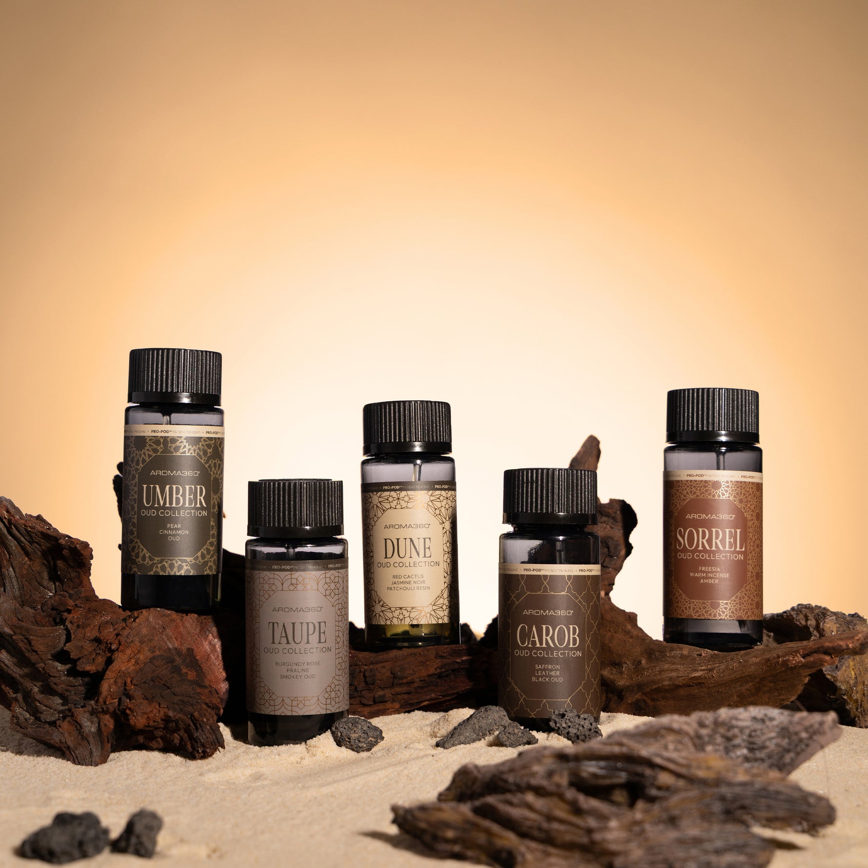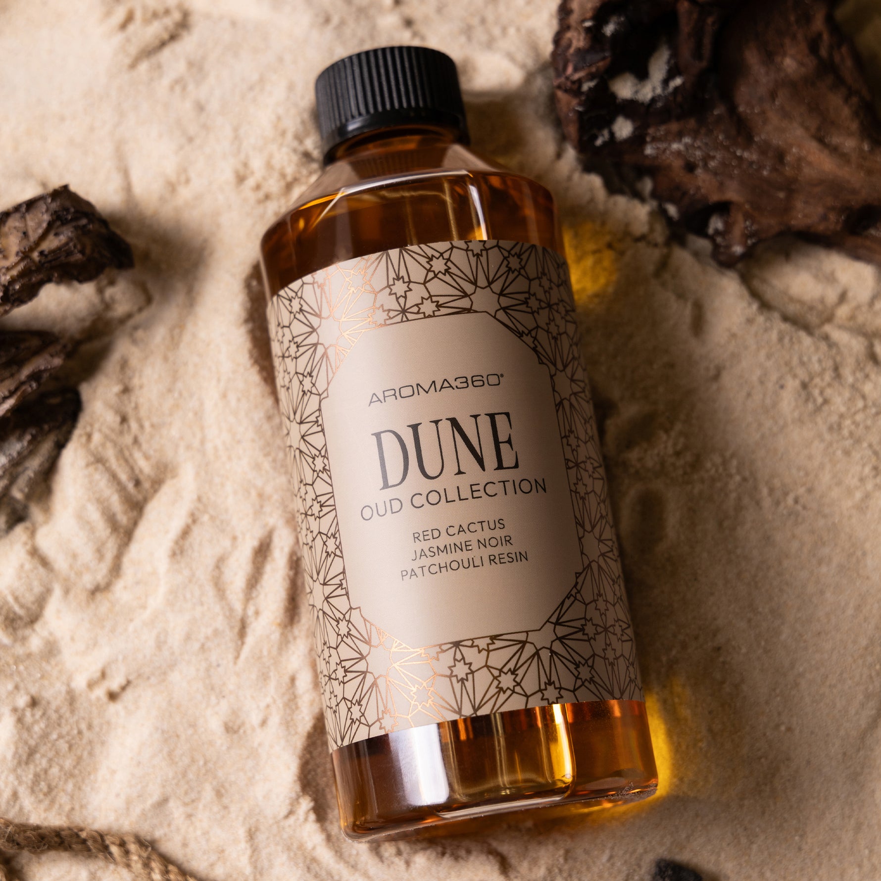 Anchoring the experience is a rich base of patchouli resin, vanilla, and misted musk, grounded by the earthy warmth of sand dunes. Together, they create a lingering trail that is both soft and smoldering—echoing the heat of twilight on desert skin.
