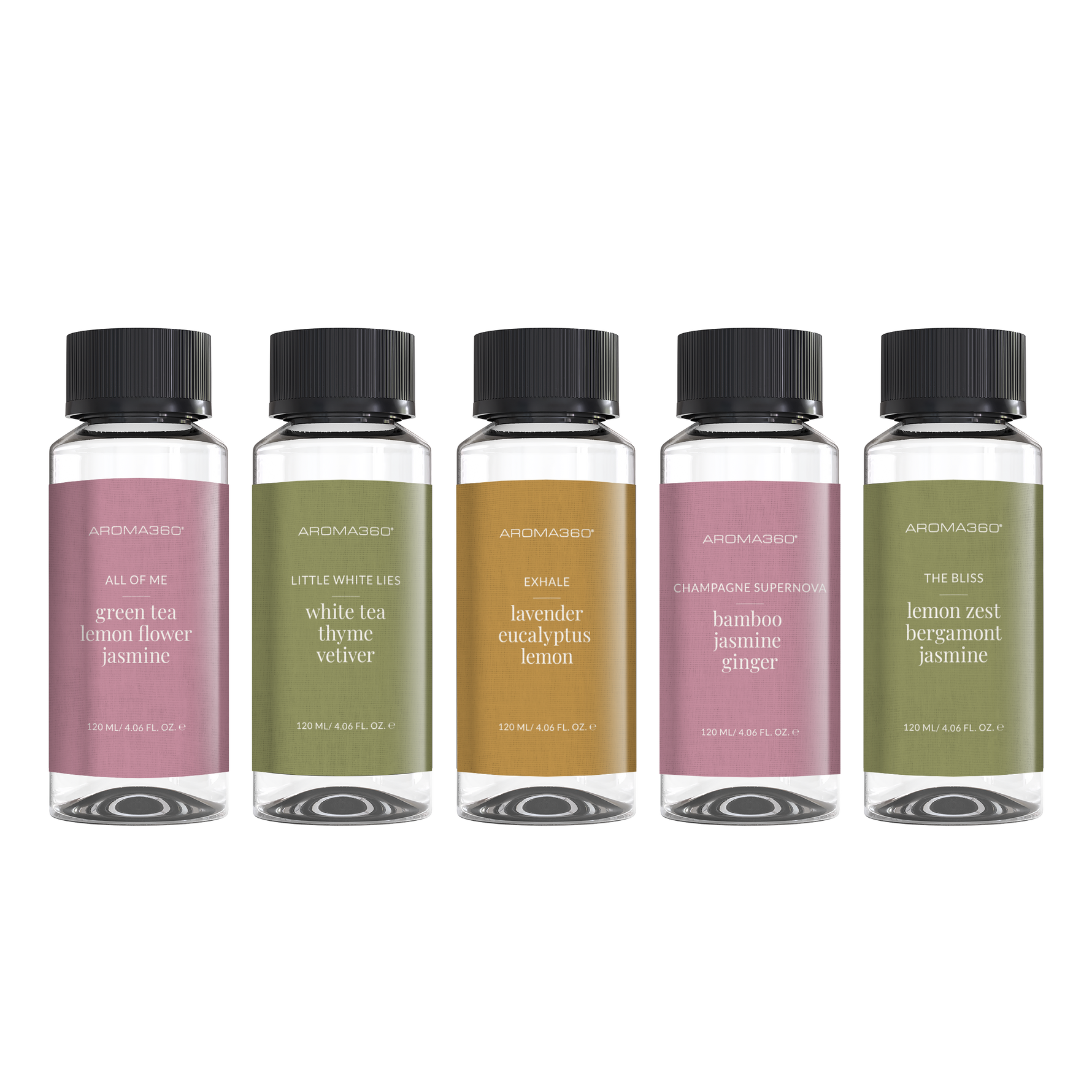 Discover. Experience. Indulge. The Spa Scents Discovery Set features our best selling spa scents that will transport you to a relaxing oasis. Each scent discovery set comes with 5 fragrance oils in 120mL bottles.