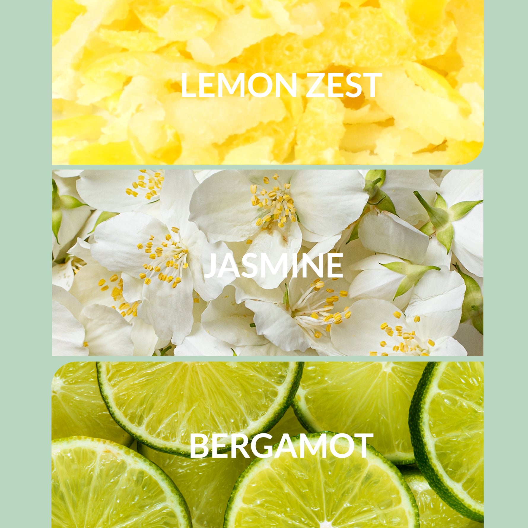 A wonderful blend of garden herbs and sparkling citrus notes. Hearty lemongrass and fresh, earthy sage combine to complete this uplifting fragrance.